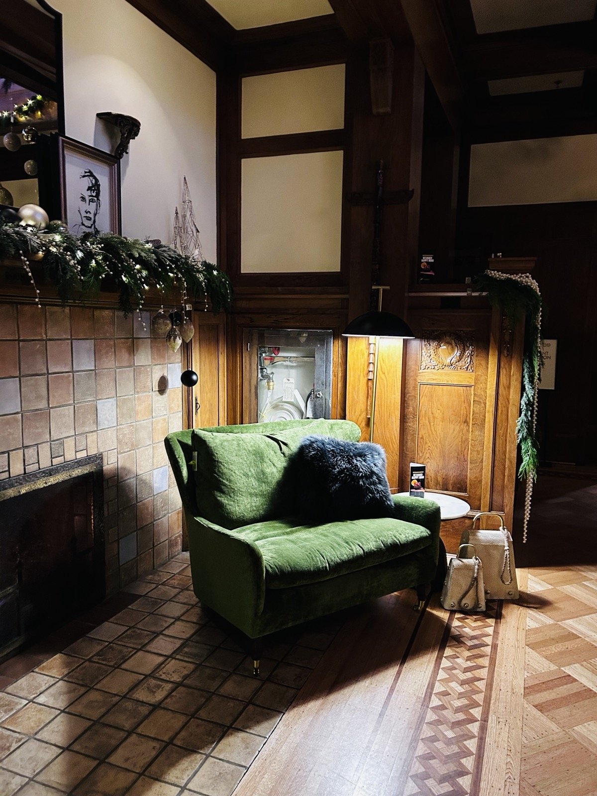 From the outside, the architecture is warm rather than imposing. It carries a cozy stateliness - the kind that suggests substance without spectacle. Even before entering, you can imagine what lies within: the scent of aged wood, the gleam of polished floors, heavy doors that close with intention, beveled glass catching soft light. A sweeping staircase curves upward. A slightly stooping upper balcony overlooks the main level. Vaulted ceilings rise gracefully, crowned with vintage chandeliers that feel both elegant and enduring.