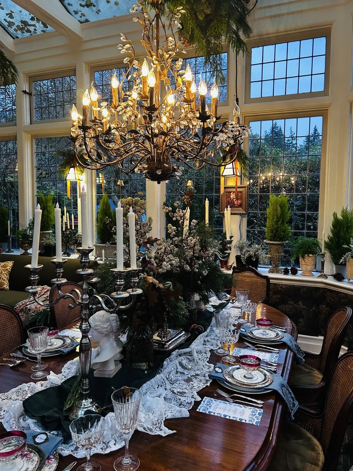 As I moved from the outdoor installations into the heart of the house, the layers continued to unfold - twinkling décor, fireside intimacy, structured furniture arrangements, lush florals, refined mantel styling, distinct table settings. Entertaining was expressed in high Christmas style throughout. The house felt alive with ideas.