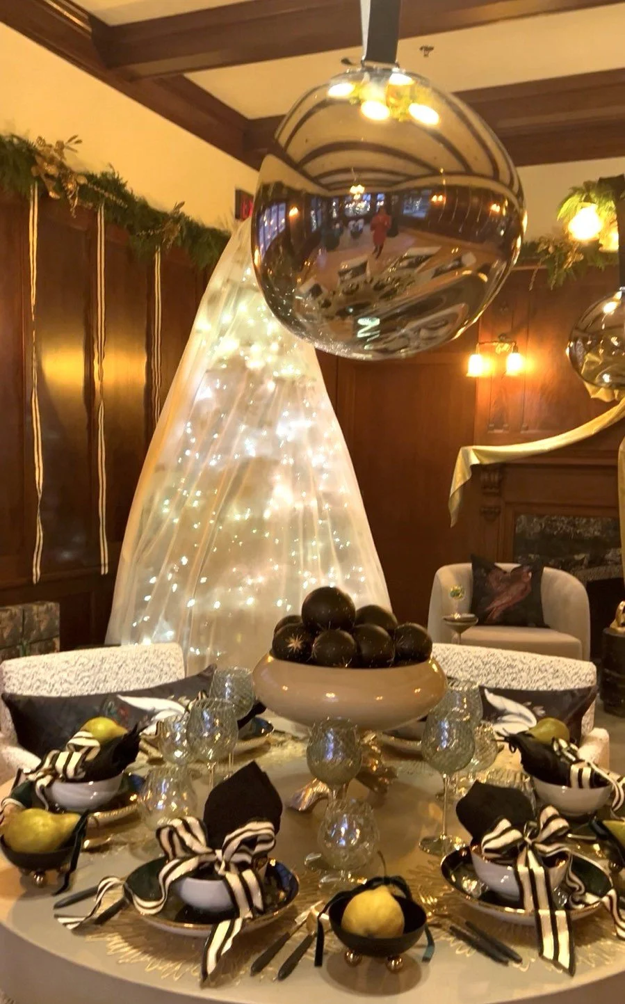 On the back terrace, trees stood in celebratory alignment - each one themed, distinct, and expressive. One playful. One refined. One richly saturated in color and pattern. Each tree functioned as its own art piece, demonstrating that even a single symbol of the season can carry infinite interpretations.