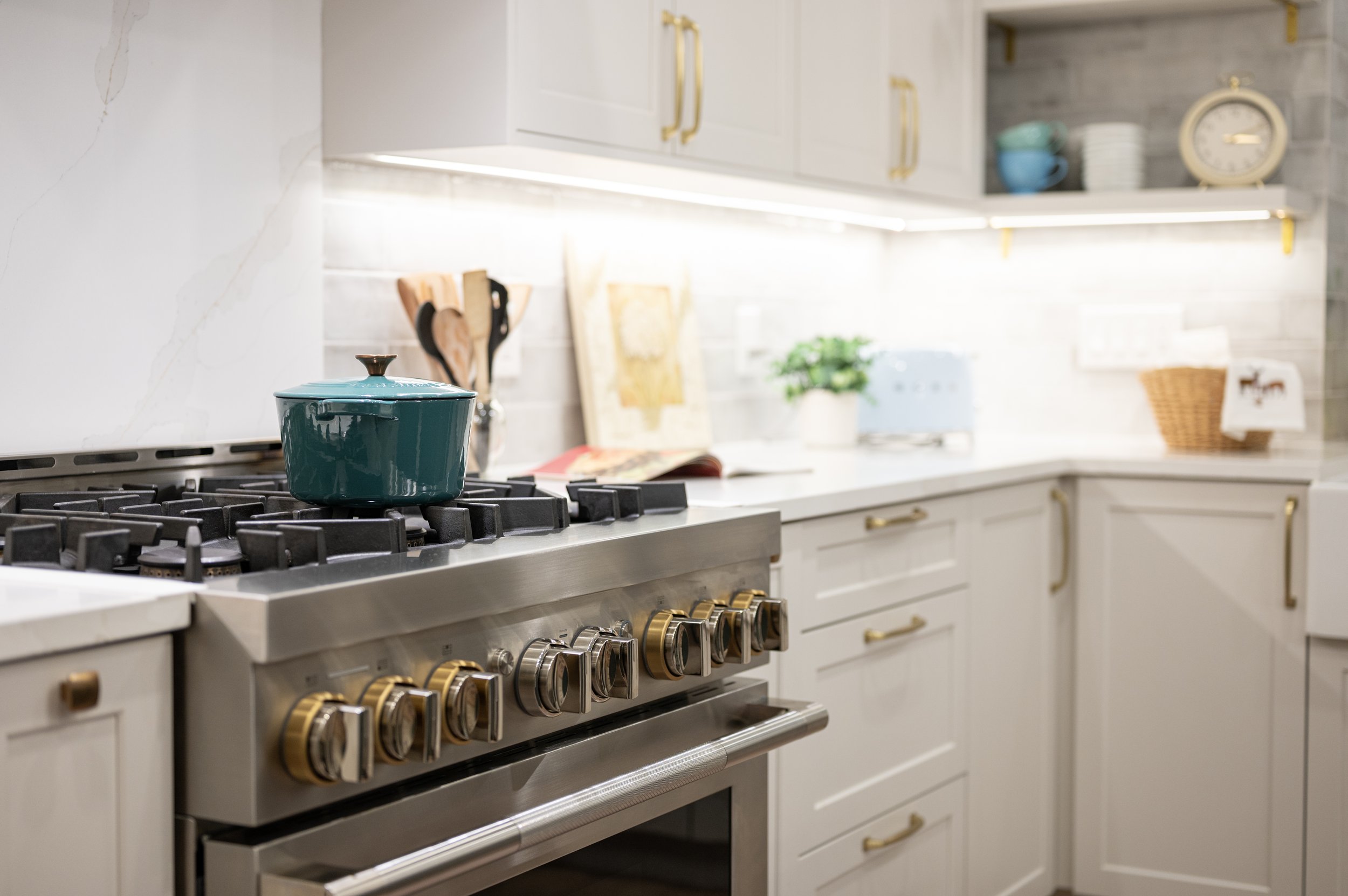 Scale & Proportion can be Over Scaled Hardware in a busy city condo kitchen suggesting deliberate design feature suggesting contrast and disruption to create a focal point. Thoughtful proportioning signals contextual awareness.