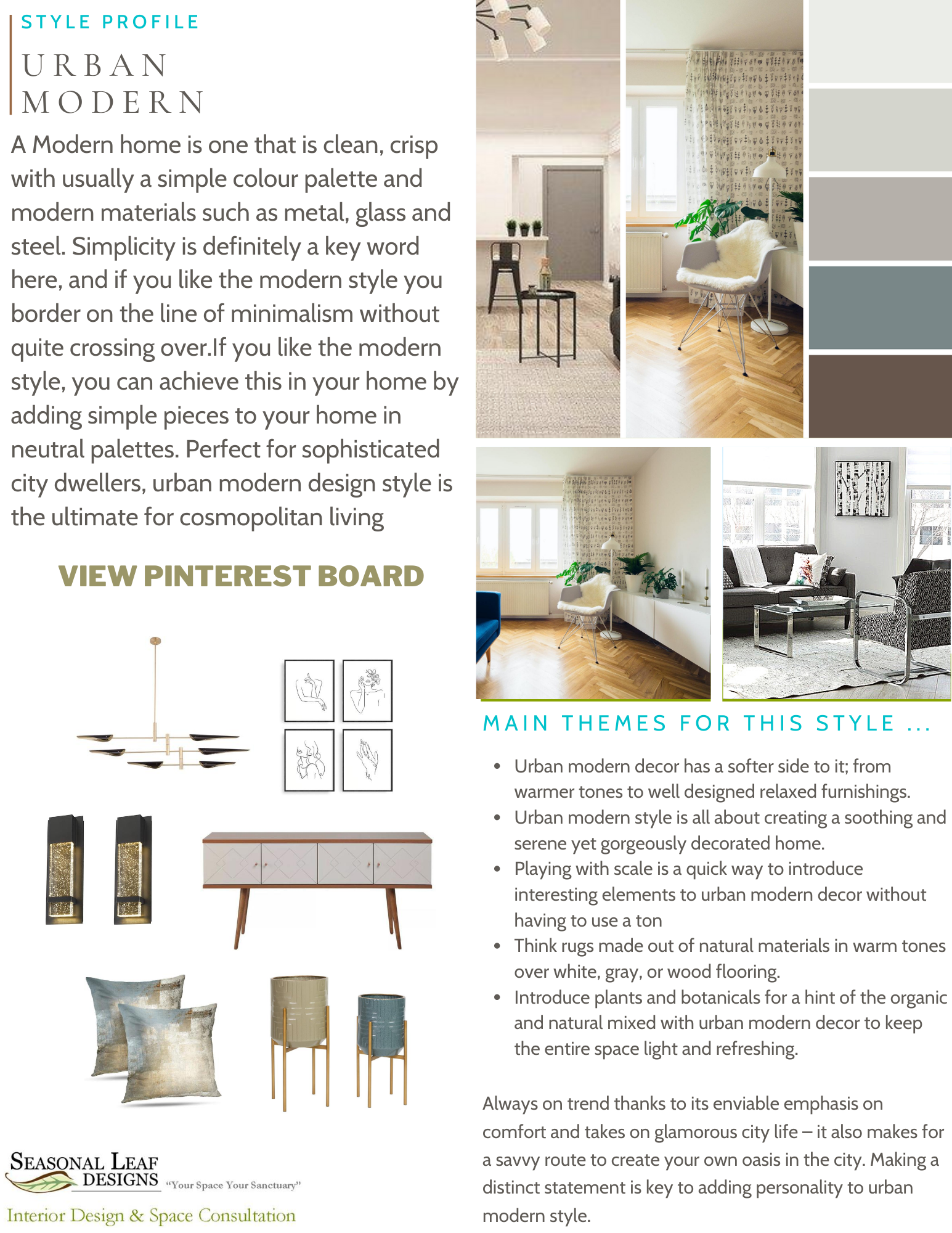 An Urban Modern home is one that is clean, crisp with usually a simple colour palette and modern materials such as metal, glass and steel. Simplicity is definitely a key word here, and if you like the modern style you border on the line of minimalism without quite crossing over.